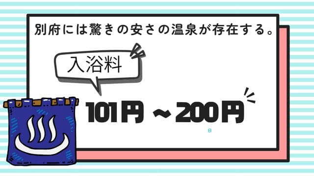 別府八湯温泉道八十八湯めぐりの対象となっている温泉の中で、入浴料が101円~200円の温泉の記事一覧をまとめてます。共同浴場を中心に、手頃な料金で利用できる温泉が多く、地元の人たちにも観光客にも親しまれてます。気軽に立ち寄れて、別府の温泉文化を感じられるスポットを紹介していきます。